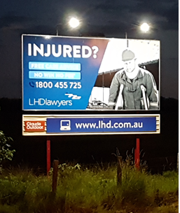 12m (40ft) x 3m (10ft) billboard with 4 x 20w OziRoo floodlights running on an OziRoo Gen6 solar system. Monitored and managed remotely. Lights are extremely light weight are dimmable from 0-150%. Lamp life – 95,000 to 100,000 hours.